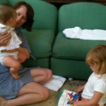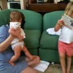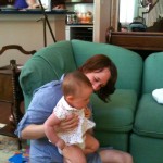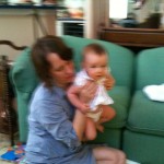 I am in terror of falling down the stairs with Giada. Speaking of, we have been having a great time with her in the pool. She just splashes away and doesn’t care when she gets water in her eyes or on her face. We haven’t put her underwater yet like those water babies because it freaks me out and I just don’t see the point. I mean its not like she is going to swim around on her own. Hmmm… Anyone else done this and purpose? Brad said we are taking her to the pool every night now. We got home last night Brad put her down on the bed, she cried for like 1 second and was out like a light for the whole night. She has 2 teeth on her bottom gum and they are sharp!